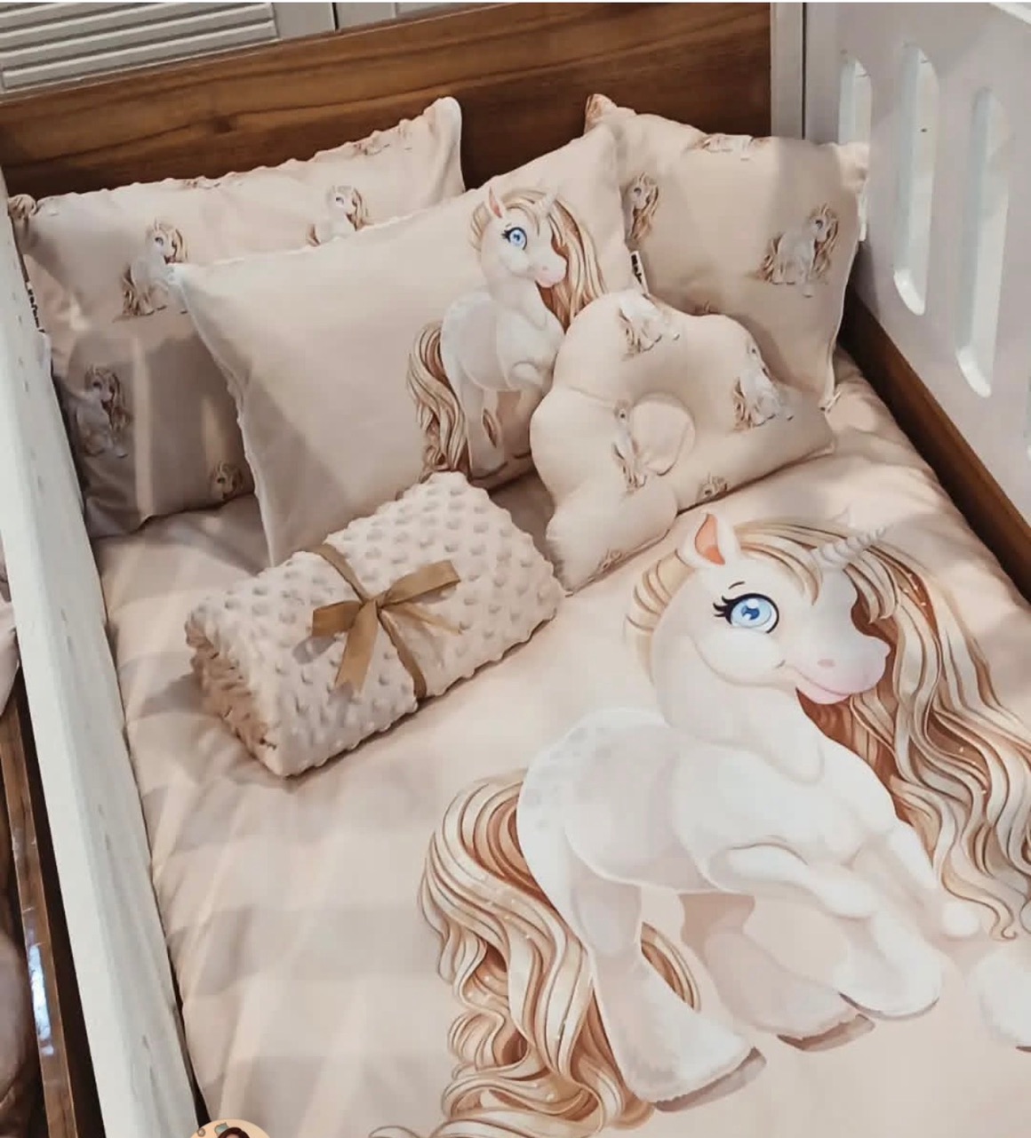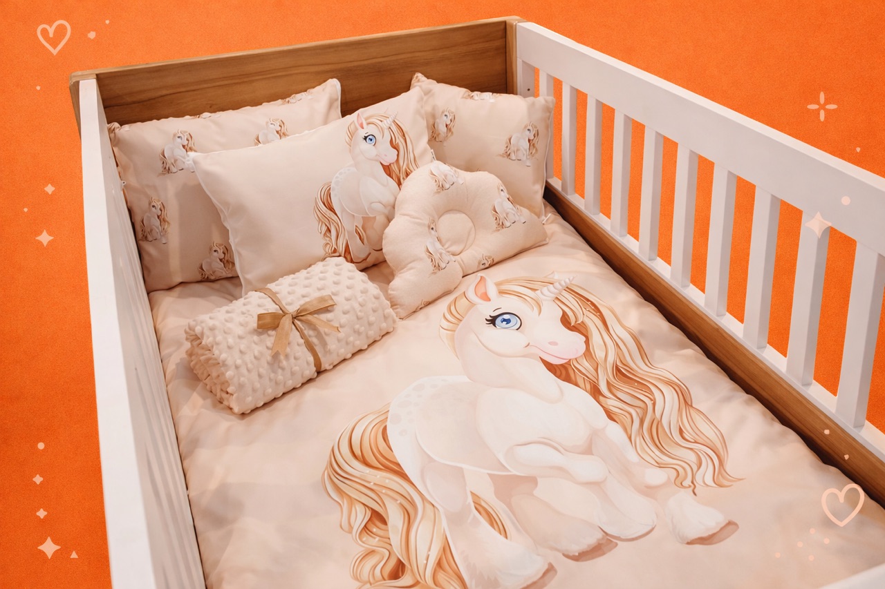 سرویس خواب ۵ تیکه نوزاد طرح اسب تک‌شاخ، با طراحی فانتزی و دوست‌داشتنی، انتخابی ایده‌آل برای ایجاد فضایی آرام، شاد و ایمن در اتاق خواب نوزاد است. این سرویس با ترکیب کتان ترک درجه یک و مخمل لطیف ضد تعریق و ضد حساسیت تولید شده و خوابی راحت و دلپذیر را برای کودک شما فراهم می‌کند.